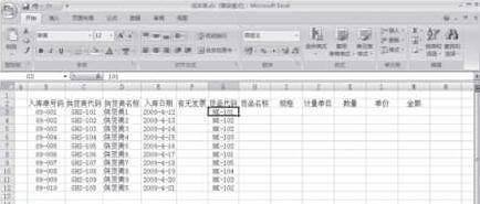 excel制作仓库管理表格的方法5:录入“入库日期”和“商品代码”