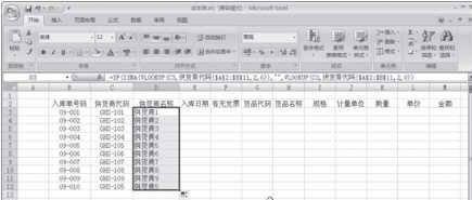 excel制作仓库管理表格的方法6:编制“商品名称”公式