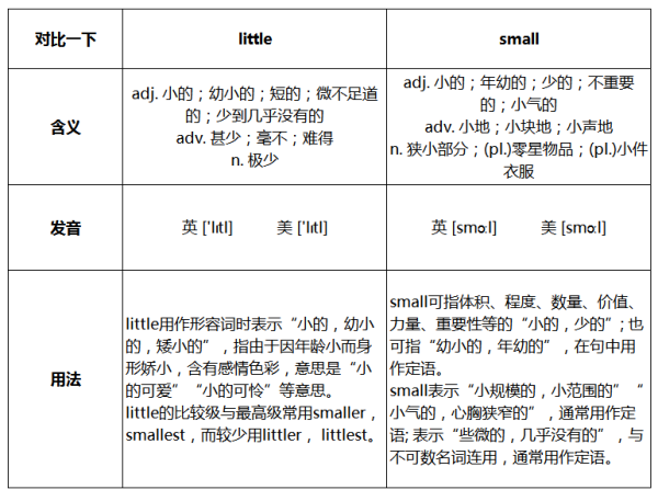 这两个词的区别我懂,little 强调数量非常小,有时候甚至可以说是零;而 small 表示某物体积小。给大家简单总结了两个词的含义、发音以及用法,先不切木敌很东采族验大概的了解一下~~
