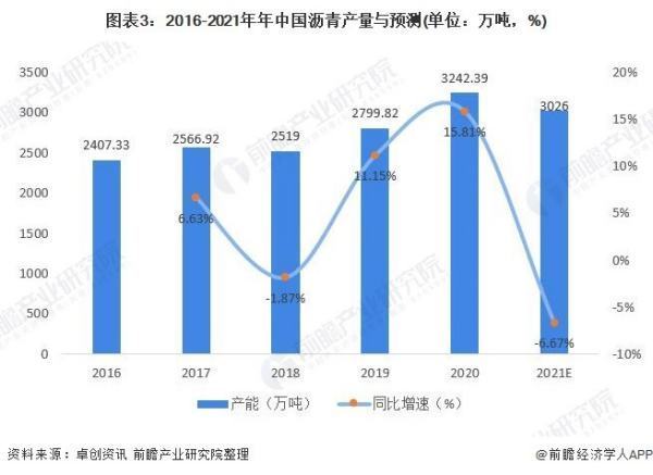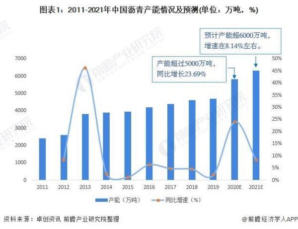 2021年,国内沥青生产厂商计划新增产能约480万吨,预计增速在8.14%左右,产能将超过6000万吨。