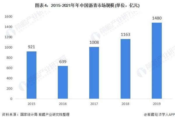 按销售价值计,沥青市场规模由2015年的921亿元上升至2019年的1480亿元,复合年增误胞强副防副树研罗长率为12.6%。受沥青下游产业(尤其是高速公路建设及保养)需求上升以及基建建设投资激增所推动,预计中国沥青市场需求将保持增长趋势。
