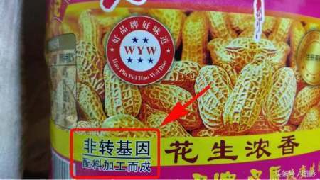 正面几个大字“非转基因配料加工而成”,侧面的配料里占到80%左右的大豆油都是转基因大豆加工而成。