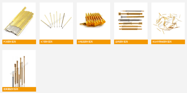 包括ICT探针,PCB探针,定向探针 ,大电流探针,线束测试探针,BGA半导体探针