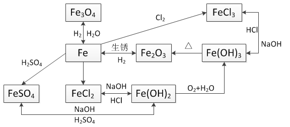 铁、氧化铁、氧化亚铁、氢氧化铁、请氧化亚铁、四氧化三铁氯化铁、氯化亚铁和硫酸亚铁之间的转换图怎么画