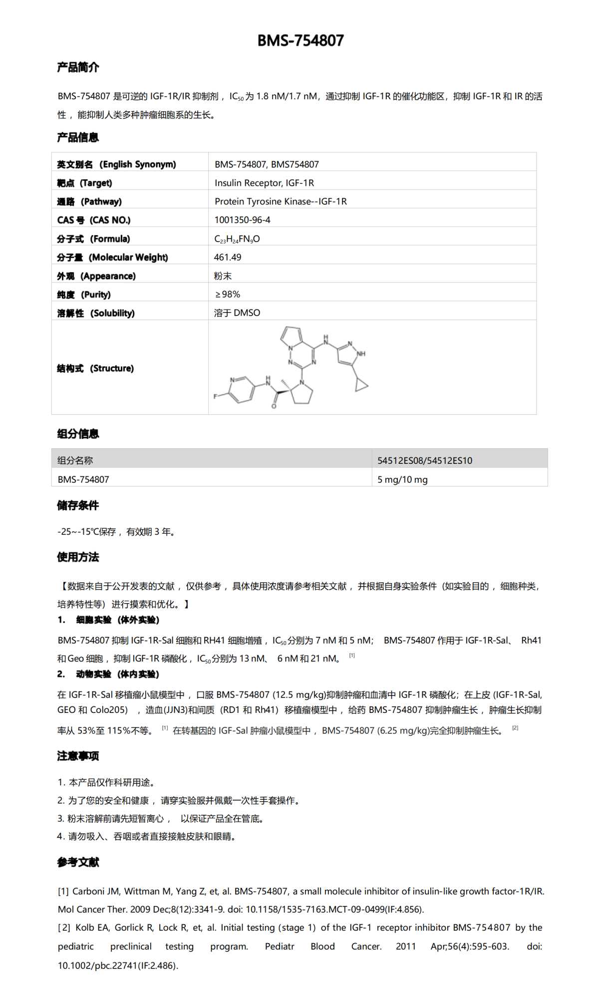 | 标准名称: | BMS754807 抑制剂 | 英文名称: | Bms-754807 |