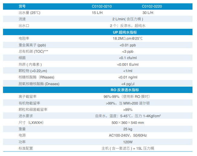 15、30升/小时,超纯水电阻率达到18.2MΩ.cm