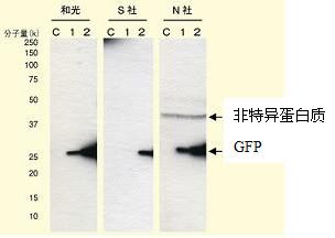 Lane 2:HepG2 cell Lysate(5×104cells)+rGFP 10ng