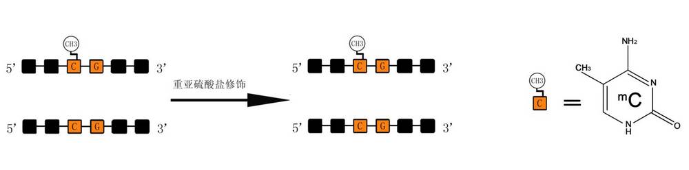 DNA甲基化存在于大多数真核生物中,一般发生在CpG双核苷酸中胞嘧啶的5’UTR区,起调控作用。CpG的胞嘧啶大概有80%被甲基化,20%处于基因调控区的CpG岛中。BSP甲基化测序(Bisulfite Genomic Sequencing PCR)的原理通过对基因组DNA进行重亚硫酸盐处理,非甲基化的胞嘧啶被脱氨基而转变成尿嘧啶,在随后的PCR反应中尿嘧啶转变成胸腺嘧啶,而甲基化的胞嘧啶不能被脱氨基,在反应完成时被保留(见下图),我们将扩增得到的PCR产物进行TA克隆测序,就可以分析甲基化发生的具体情况。该方法实验结果准确性高,是甲基化检测的金.标准。