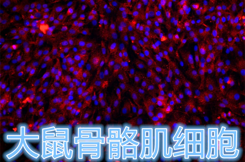 大鼠骨骼肌细胞采用胶原酶消化法制备而来,细胞总量约为5×10^5cells/T25细胞培养瓶;细胞经α-Sarcometric Actin(ACTA)免疫荧光鉴定,纯度可达90%以上,且不含有HIV-1、HBV、HCV、支原体、细菌、酵母和真菌等。
