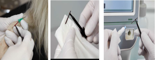 无需预稀释的过程,直接由含EDTA的末梢血微量管采集20微升的动物末梢血,插入机器直接检测,出结果,为动物的微量采血提供方案。