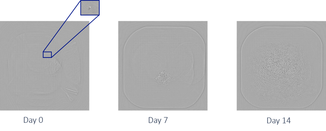 克隆细胞系的开发是生物药物生产(例如单克隆抗体)的关键步骤。为了确保产品的一致性、质量和安全性,生产中使用的细胞系必须源自单个细胞。其大多数工作流程都涉及到单细胞分离,且分离得到的单细胞在孔板中的增殖生长需要一系列的影像资料追溯和佐证。