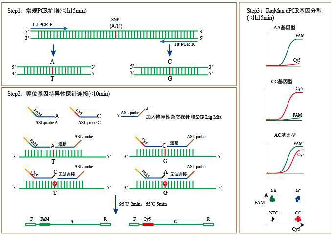 在PCR反应体系中,加入过量SYBR荧光染料,SYBR荧光染料特异性地掺入DNA双链后,发射荧光信号,而不掺入链中的SYBR染料分子不会发射任何荧光信号,从而保证荧光信号的增加与PCR产物的增加完全同步。