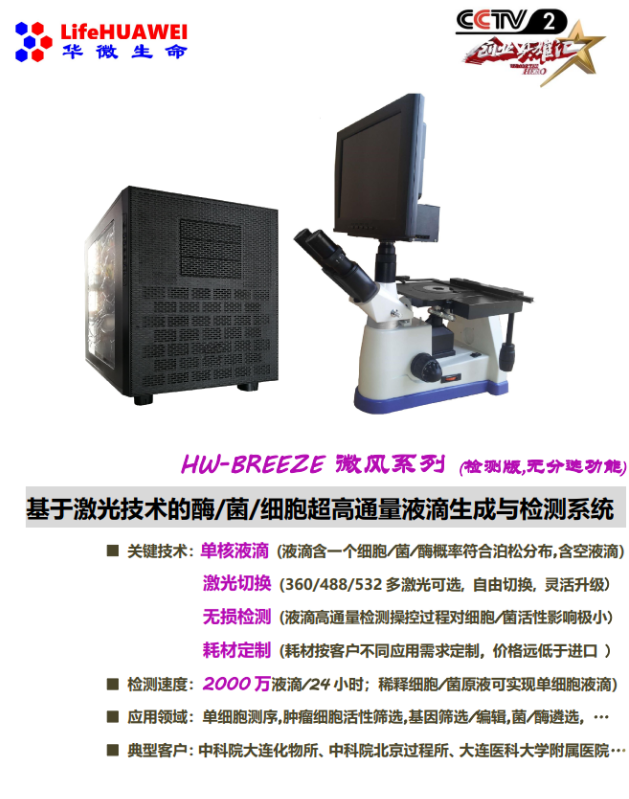 微风_单细胞液滴制备与检测系统_单细菌液滴生成_单细胞液滴包裹_液滴混匀_液滴培养_单细胞孵育_细胞储存_液滴PCR_基因检测_基因编辑_定向进化_文库制备_单核液滴_单细胞液滴柔性控制_精准快速温控_液滴混匀_单细胞分离仪_细胞存储_激光诱导荧光检测_PDMS微流控芯片