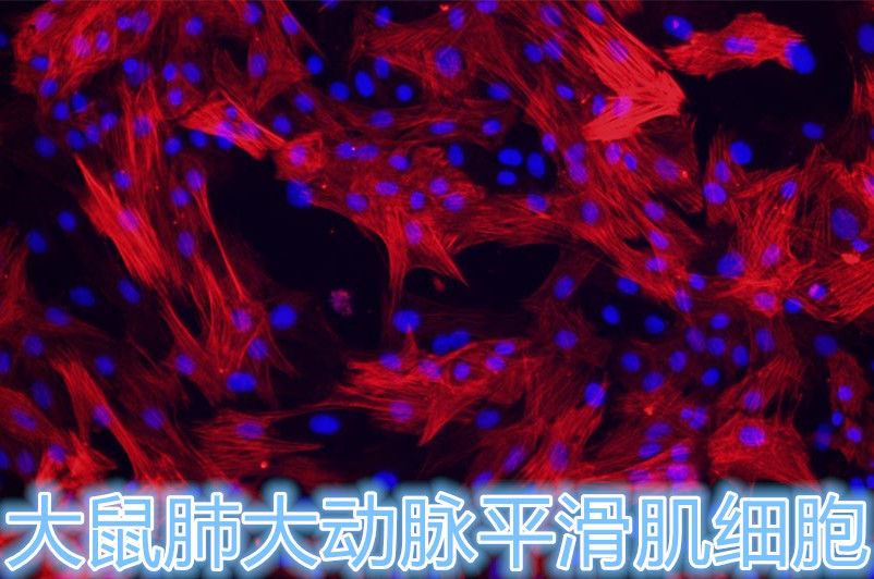 大鼠肺大动脉平滑肌细胞采用胰蛋白酶-胶原酶联合消化法结合差速贴壁法制备而来,细胞总量约为5×10^5cells/T25细胞培养瓶;细胞经alpha-SMA免疫荧光鉴定,纯度可达90%以上,且不含有HIV-1、HBV、HCV、支原体、细菌、酵母和真菌等。