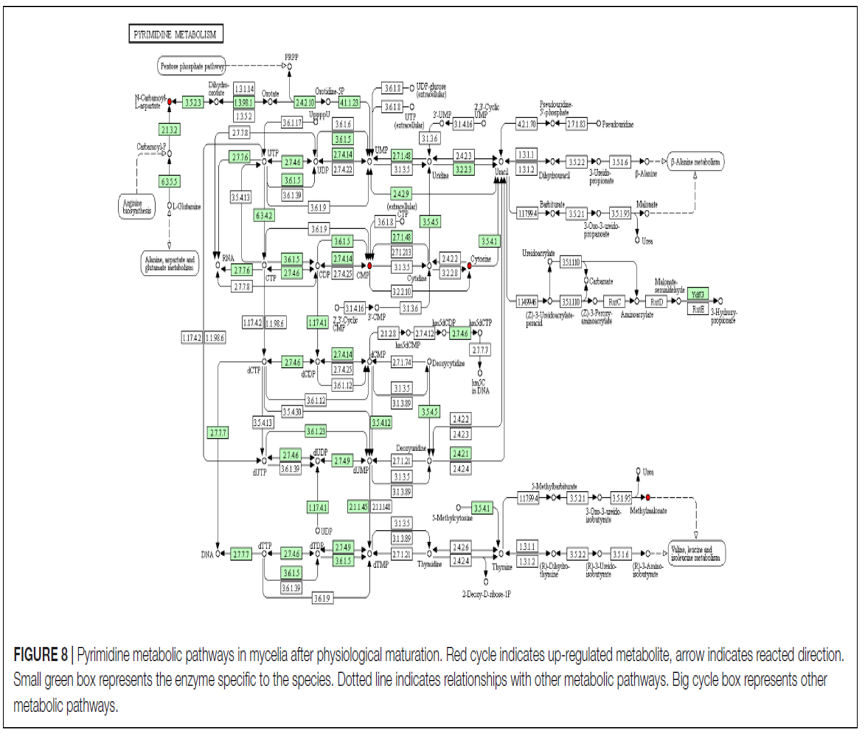图8 | 生理成熟后菌丝体的嘧啶代谢途径