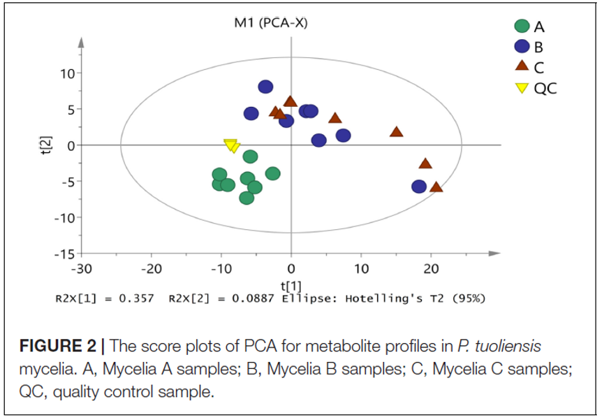 图2 | PCA得分图显示了白灵菇菌丝体中的代谢轮廓谱