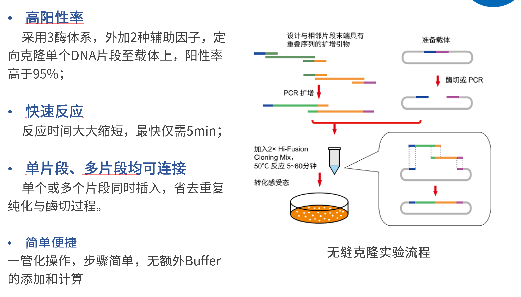 克隆效率高,单次反应价格低;