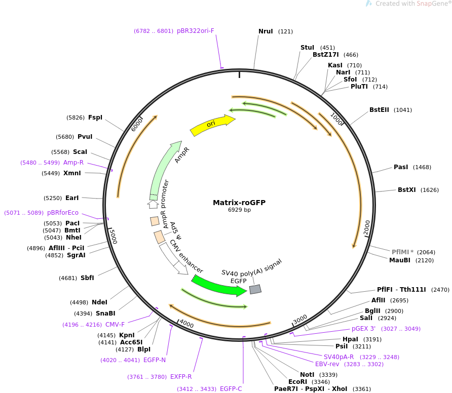 Matrix-roGFP线粒体定位质粒基本信息质粒图谱