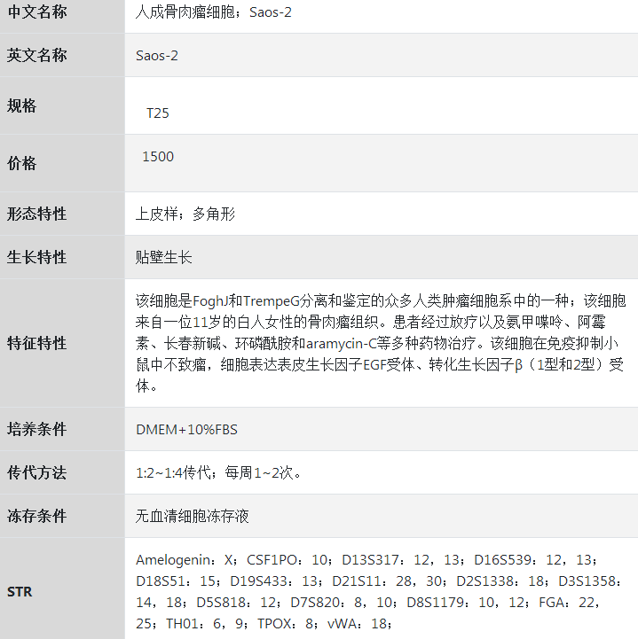 人成骨肉瘤细胞;Saos-2