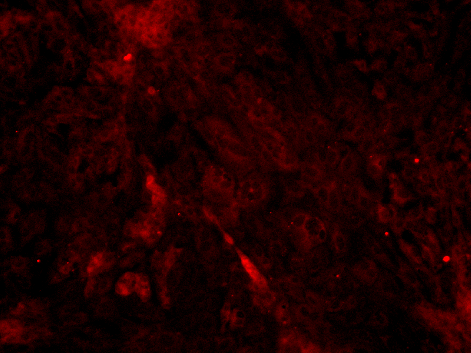 原代细胞冻存液常用配方:50%完全原代细胞培养液(不含有血清、添加剂、双抗)+ 40%胎牛血清 + 10%DMSO原代细胞免疫荧光鉴定:一、原代培养的细胞用4%的多巨甲醛,室温固15 min,0.1% Triton-X-100 透膜 10 min,PBS 清洗 3 遍,每5 min,二、山羊血清室温封闭45 min,一抗 Insulin,兔多抗,使用浓度 1 ∶ 50;Glucagon 抗体,鼠单抗,使用浓度 1 ∶ 200;Pancreatic Polypeptide(pp)抗体,兔多抗,使用浓度1∶200,4 ℃孵育过夜,PBS 清洗 3 遍,每次 5 min,三、加入相应的二抗Alexa Flour 594 (山羊抗兔)或FITC(山羊抗小鼠),室温避光孵育 45 min,PBS清洗3 遍,每次 5 min,四、DAPI 复染核,PBS 清洗 3遍,每次 5 min,普通荧光显微镜下观察并照相.五、实验结果:Insulin(200X):图中红色荧光为Insulin阳性,阳性率>90%,即:细胞纯度>90%