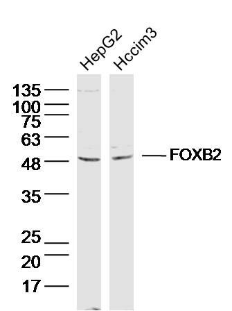 产品货号 : jlcR16161 英文名称 : FOXB2 中文名称 : 叉头蛋白B2抗体 别名 : bA159H20.4; Forkhead box B2; Forkhead box protein B2; FOXB 2; Foxb2; FOXB2_HUMAN. 研究领域 : 细胞生物信号转导转录调节因子表观遗传学 抗体来源 : Rabbit 克隆类型 : Polyclonal 交叉反应 : Human, Mouse, Rat, Cow, Rabbit, 产品应用 : WB=1:500-2000 ELISA=1:500-1000 IHC-P=1:400-800 IHC-F=1:400-800 ICC=1:100-500 IF=1:100-500 (石蜡切片需做抗原修复) not yet tested in other applications. optimal dilutions/concentrations should be determined by the end user. 分子量 : 45kDa 细胞定位 : 细胞核 性状 : Lyophilized or Liquid 浓度 : 1mg/ml 免疫原 : KLH conjugated synthetic peptide derived from human FOXB2:351-432/432 亚型 : IgG 纯化方法 : affinity purified by Protein A 储存液 : 0.01M TBS(pH7.4) with 1% BSA, 0.03% Proclin300 and 50% Glycerol. 保存条件 : Store at -20 °C for one year. Avoid repeated freeze/thaw cycles. The lyophilized antibody is stable at room temperature for at least one month and for greater than a year when kept at -20°C. When reconstituted in sterile pH 7.4 0.01M PBS or diluent of antibody the antibody is stable for at least two weeks at 2-4 °C. PubMed : PubMed 产品介绍 : The Forkhead-box (FOX) genes comprise a superfamily of at least 43 members that encode proteins which are involved in transcriptional regulation and may be associated with the pathogenesis of various cancers. FOXB1 (forkhead box B1), also known as FKH5 or HFKH-5, and FOXB2 (forkhead box B2) are members of the FOX family and each contain one forkhead DNA-binding domain. Both FOXB1 and FOXB2 localize to the nucleus where they are thought to function as transcription factors that can bind to DNA via their forkhead domains. In mice, defects in the gene encoding FOXB1 are associated with retarded development of the central nervous system (CNS), suggesting that FOXB1 may play a role in CNS organization and function.