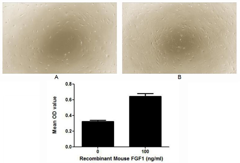 Cell proliferation effect of GTX00281-pro Mouse FGF1 protein (active). Cell viability was measured by Cell Counting Kit-8 (CCK-8).