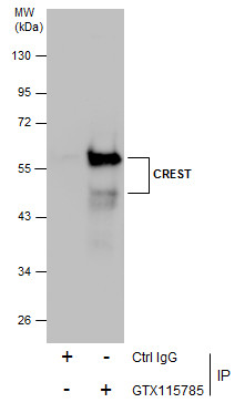 Immunoprecipitation of CREST protein from MCF-7 whole cell extracts using 5 μg of CREST antibody [N1C2] (GTX115785).