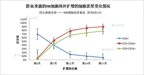 NK细胞培养试剂盒采用自体外周血或脐血PBMC,经体外操作使 NK 细胞活化扩增。本试剂盒采用纯因子法,不含滋养细胞,仅限体外研究使用。