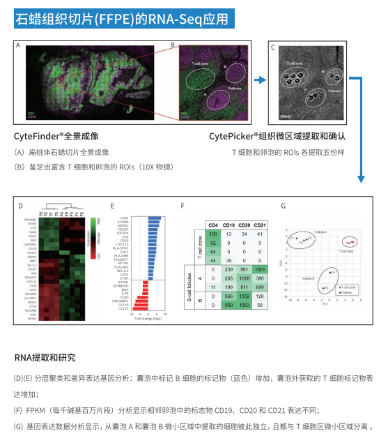 CyteFinder II 全景扫描成像系统进行多靶点(明场、荧光)成像;CyteHub图像数据管理系统进行数据的智能管理;CytePicker采用物理方法提取组织微区域/单细胞,保证提取样本的DNA/RNA的完整性,提供了Pick-Seq一种基于图像的DNA/RNA驱动的新的生物标志物发现的方法。