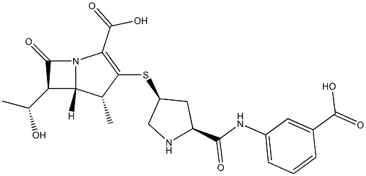 | 英文名 | Ertapenem;(4r,5r,6s)-3-[(3s,5s)-5-[(3-carboxyphenyl)carbamoyl]pyrrolidin-3-yl]sulfanyl-6-(1-hydroxyethyl)-4-methyl-7-oxo-1-azabicyclo[3.2.0]hept-2-ene-2-carboxylic acid |