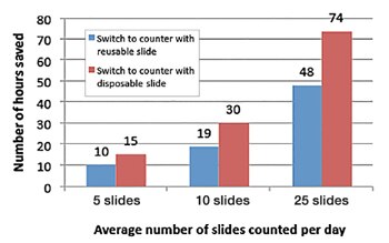 图 3.使用全自动细胞计数仪比使用手动细胞计数每月预计可节省的时间。
