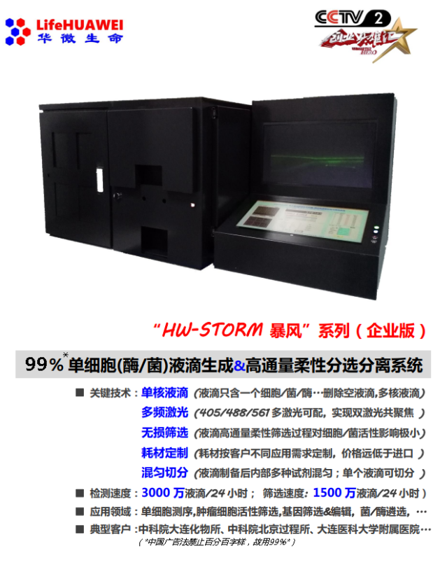 :暴风系列(企业版)单细胞分选分离系统_99%单细胞液滴超高通量制备(删除空滴)_检测_分选分离。