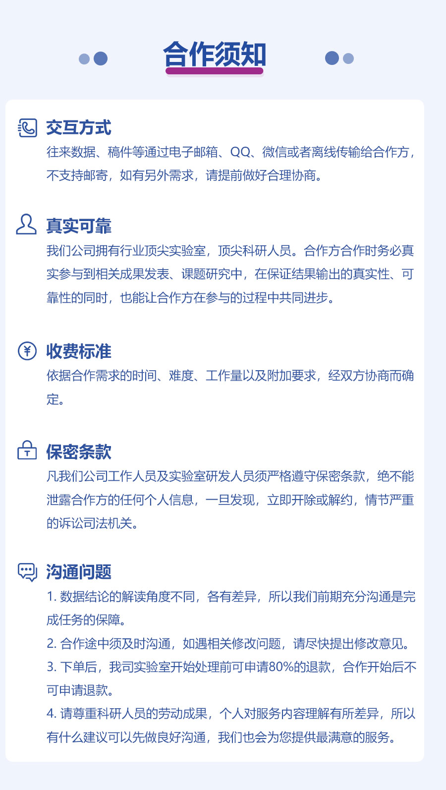 一般来说,期刊会要求在投稿时附上原始实验数据作为补充材料,我们拥有丰富的实验经验,技术高超的学术队伍,先进完善的实验平台,经验丰富的实验技术员,能灵活应对实验课题中出现的任何问题,根据您的要求提供需要的原始数据,帮您系统化解决科研难题。