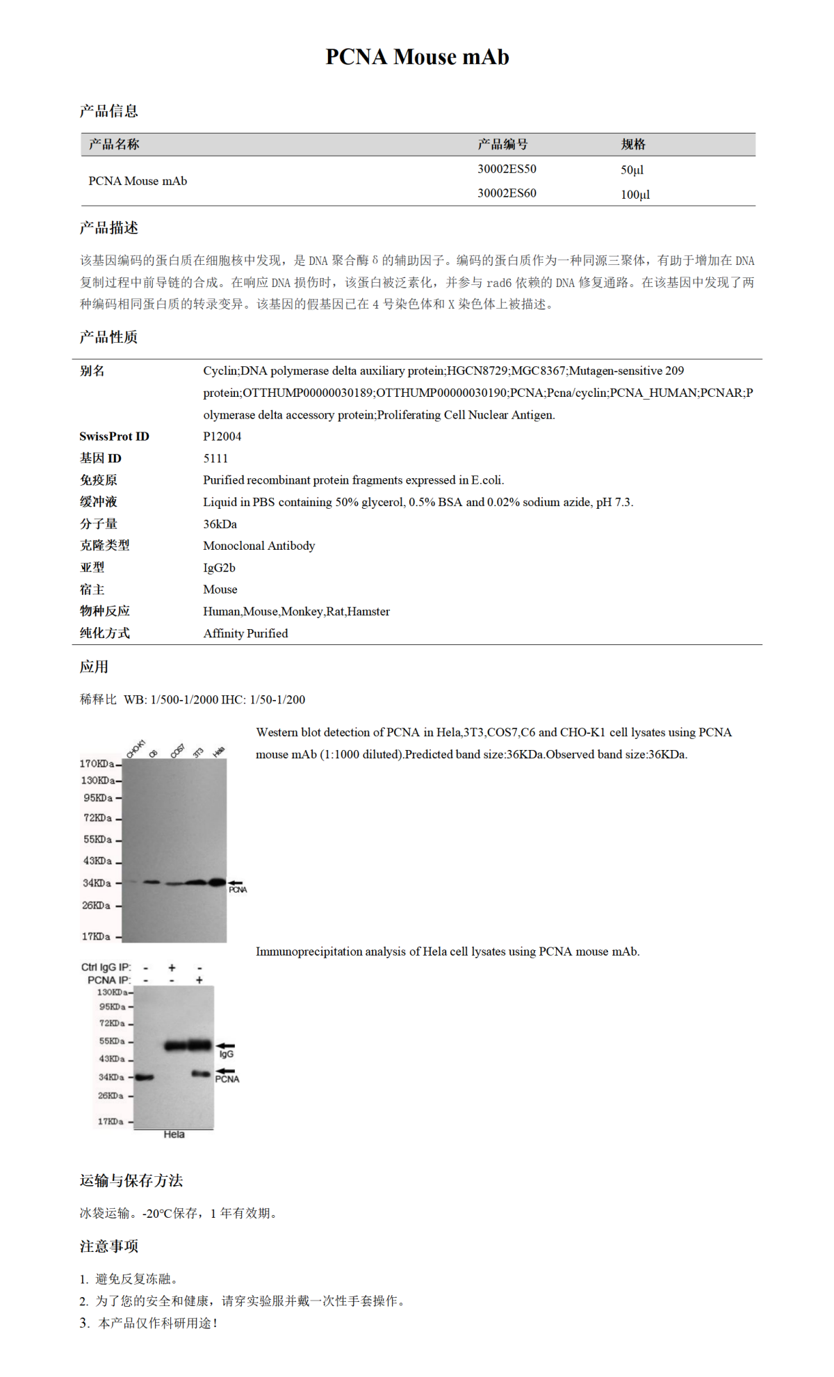 PCNA小鼠单克隆抗体 PCNA Mouse mAb