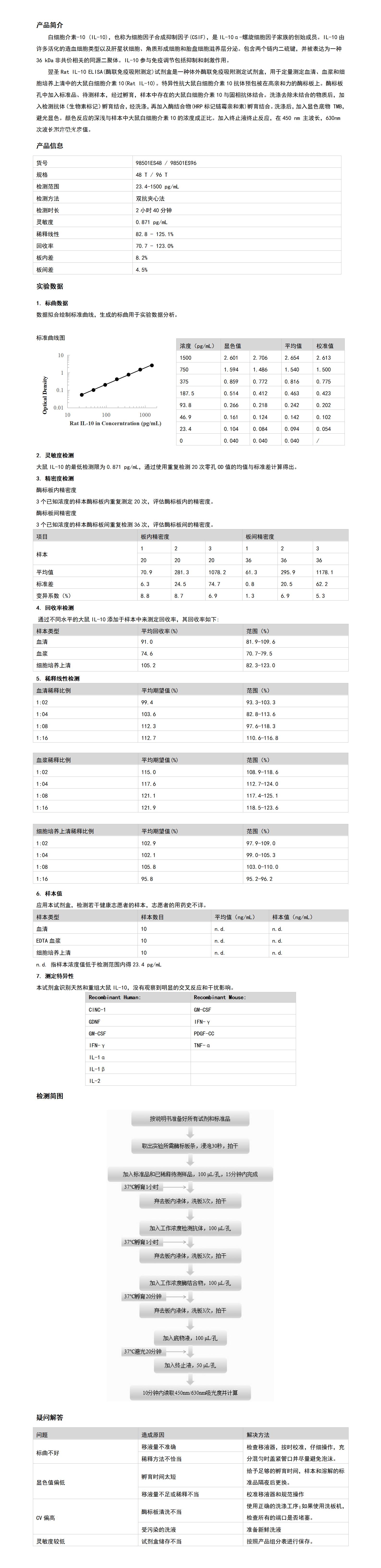QuikCyto® Rat IL-10 ELISA kit (Quick Test)(大鼠白细胞介素-10快速检测)