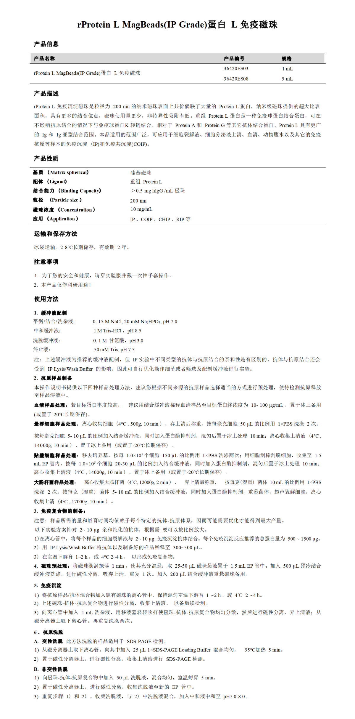 蛋白L免疫磁珠 rProtein L MagBeads(IP Grade)