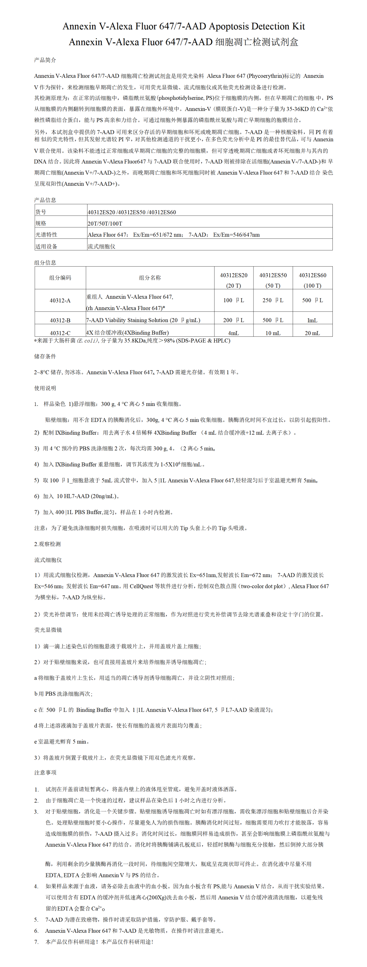 Annexin V-Alexa Fluor 647/7-AAD 细胞凋亡检测试剂盒