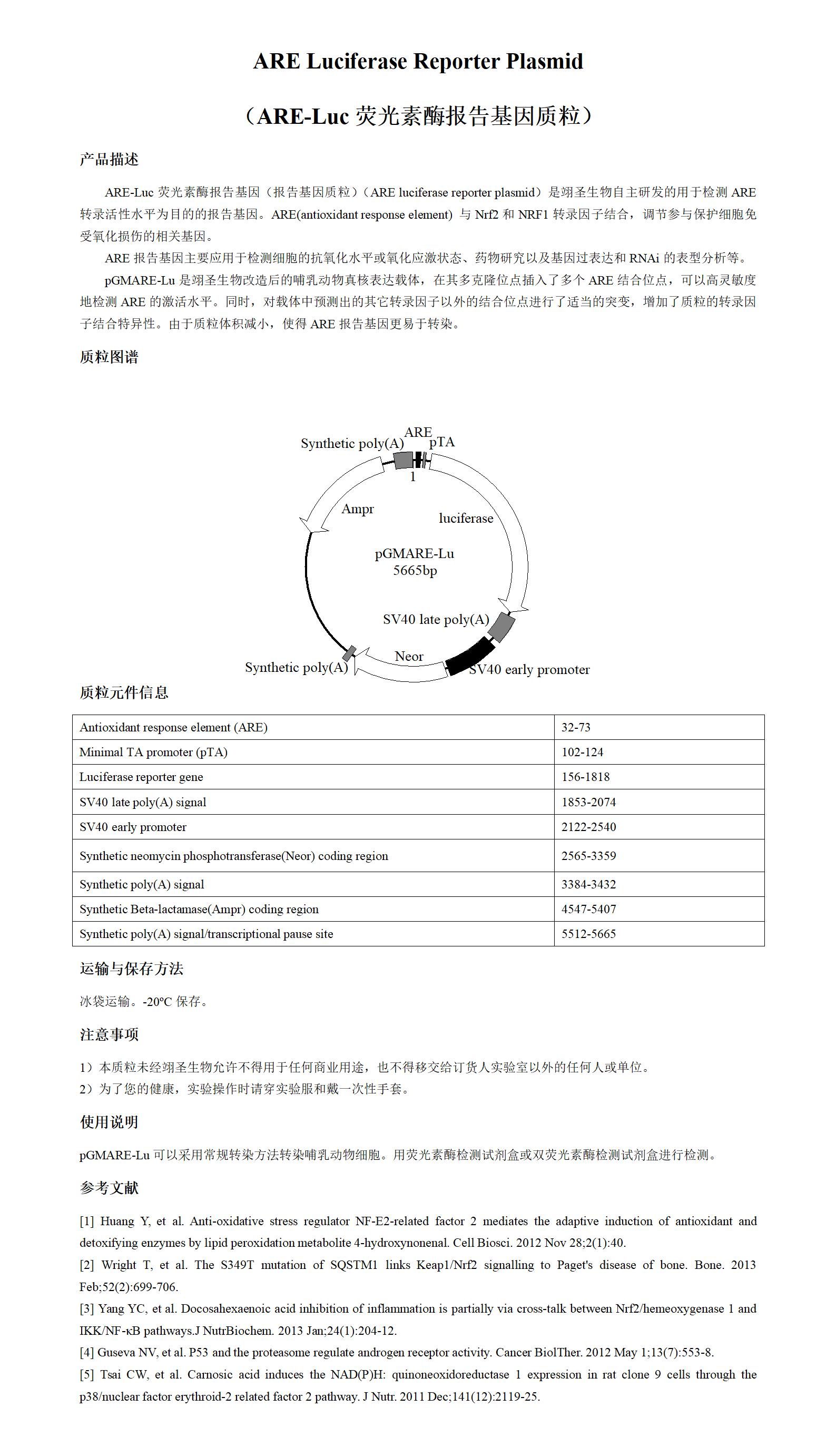 ARE Luciferase Reporter Plasmid(ARE-Luc荧光素酶报告基因质粒)