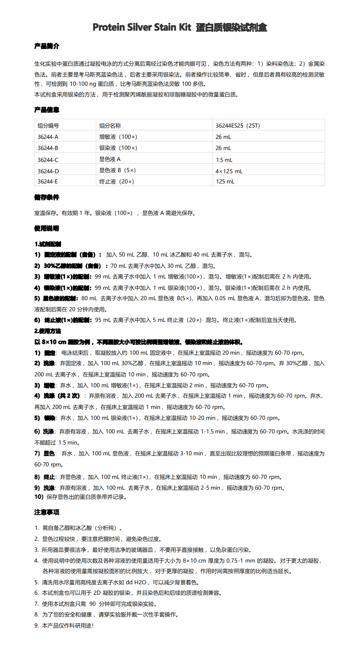 Protein Silver Stain Kit 蛋白质银染试剂盒