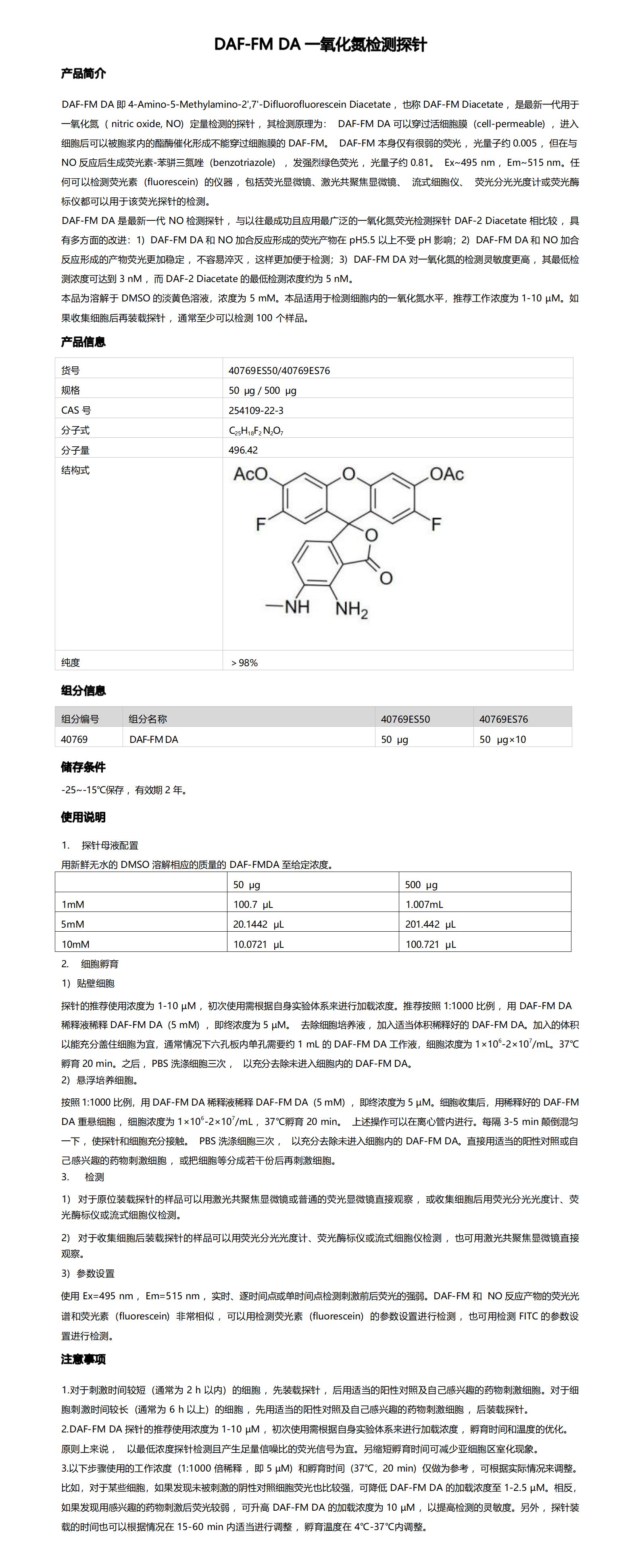 DAF-FM DA Solution (5 mM in DMSO) 一氧化氮检测探针
