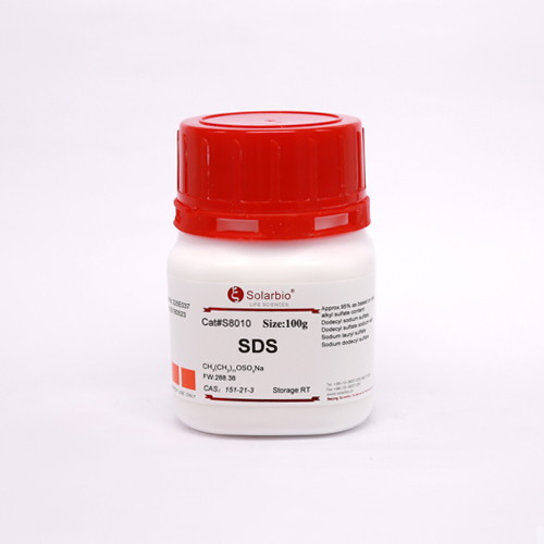 SDS说明:生化研究,用于从蛋白质中分离核酸,从宿主细胞中脱落某些病毒;蛋白电泳试剂,也可用于质粒提取