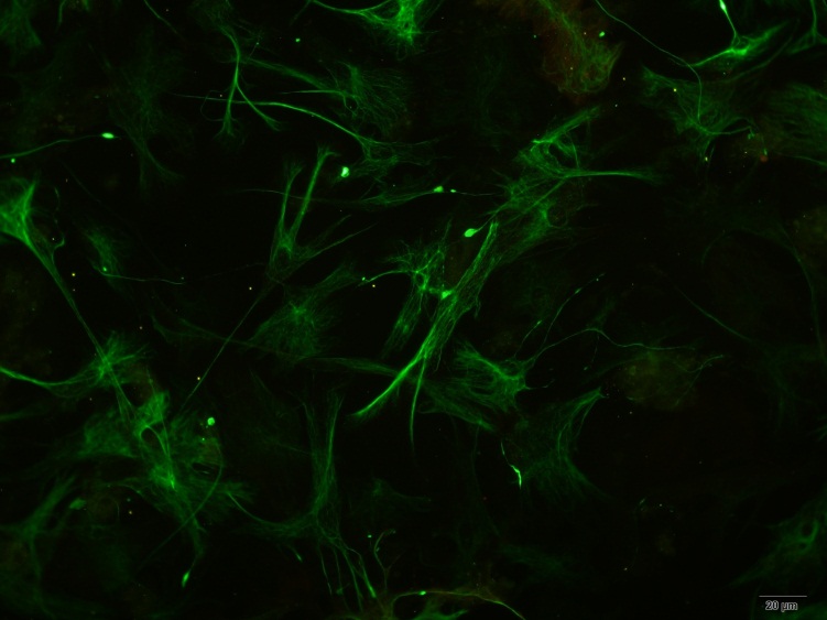 本公司生产的大鼠肝星状细胞采用体外多步灌注和密度梯度离心法制备而来,细胞总量约为5×105/T25方瓶,α-SMA、Desmin呈阳性,细胞纯度可达90%以上,且不含有HIV-1、 HBV、HCV、支原体、细菌、酵母和真菌等。