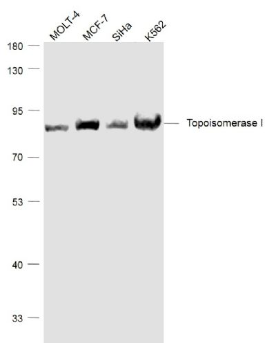 产品货号:jlcR51396 英文名称: Topoisomerase I 中文名称:小鼠抗拓普西异构酶Ⅰ单克隆抗体 别名:DNA topoisomerase 1; DNA topoisomerase I; NUP98 fusion gene; TOP 1; TOP I; TOP1; TOP1_HUMAN; TOPI; Topoisomerase 1; Topoisomerase1; TopoisomeraseI; Type I DNA topoisomerase. 研究领域:细胞生物染色质和核信号 抗体来源:Mouse 克隆类型:Monoclonal 克隆号:3D7 交叉反应: Human, Mouse, Rat, 产品应用:WB=1:500-2000 not yet tested in other applications. optimal dilutions/concentrations should be determined by the end user. 分子量:91kDa 细胞定位:细胞核 性状:Lyophilized or Liquid 浓度:1mg/ml 免疫原:KLH conjugated synthetic peptide derived from human Topoisomerase I: 亚型:IgG1 纯化方法:affinity purified by Protein A 储存液:0.01M TBS(pH7.4) with 1% BSA, 0.03% Proclin300 and 50% Glycerol. 保存条件:Store at -20 °C for one year. Avoid repeated freeze/thaw cycles. The lyophilized antibody is stable at room temperature for at least one month and for greater than a year when kept at -20°C. When reconstituted in sterile pH 7.4 0.01M PBS or diluent of antibody the antibody is stable for at least two weeks at 2-4 °C. PubMed :PubMed 产品介绍:This gene encodes a DNA topoisomerase, an enzyme that controls and alters the topologic states of DNA during transcription. This enzyme catalyzes the transient breaking and rejoining of a single strand of DNA which allows the strands to pass through one another, thus altering the topology of DNA. This gene is localized to chromosome 20 and has pseudogenes which reside on chromosomes 1 and 22. [provided by RefSeq, Jul 2008]