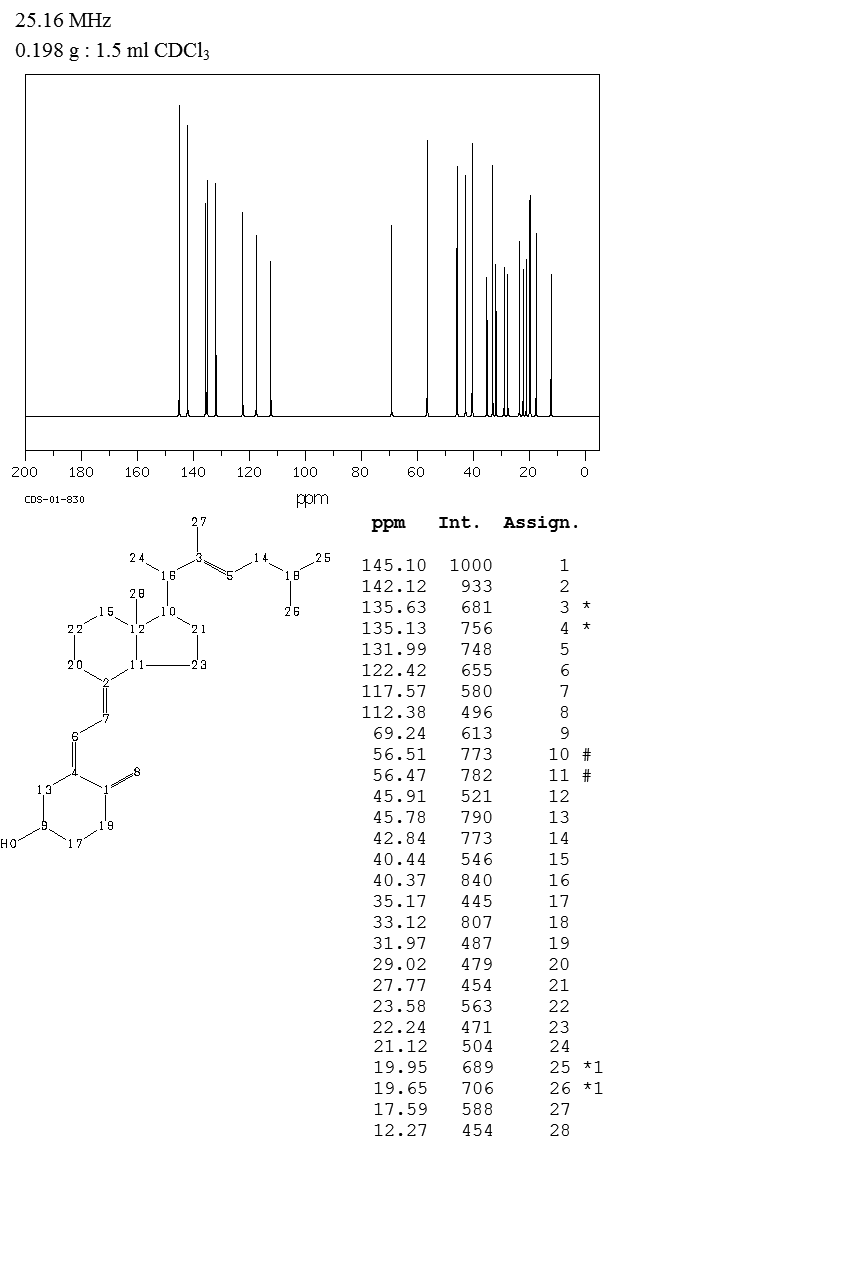 3.由啤酒酵母、香菇等分离的麦角甾醇,溶于氯仿、乙醚或环己烷等溶剂中,加入石英玻璃制作的烧瓶中,经紫外线照射而得。