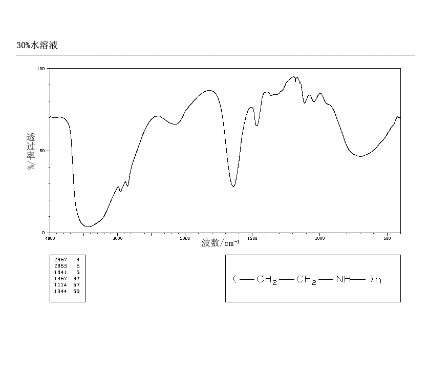 1.主要用作未施胶的吸收性纸(如滤纸、吸墨水纸、卫生纸等)的湿强度剂,但其损纸较难处理。此外并能加快纸浆滤水,使白水中细小纤维易于絮凝。对酸性染料有较强结合力,可用作酸性染料染纸时的固色剂。还可用以处理玻璃纸,使纸减少润湿变形等。聚乙烯亚胺还可用于纤维改性、印染助剂、离子交换树脂及凝聚与沉降(金属的捕集、废水处理)等。