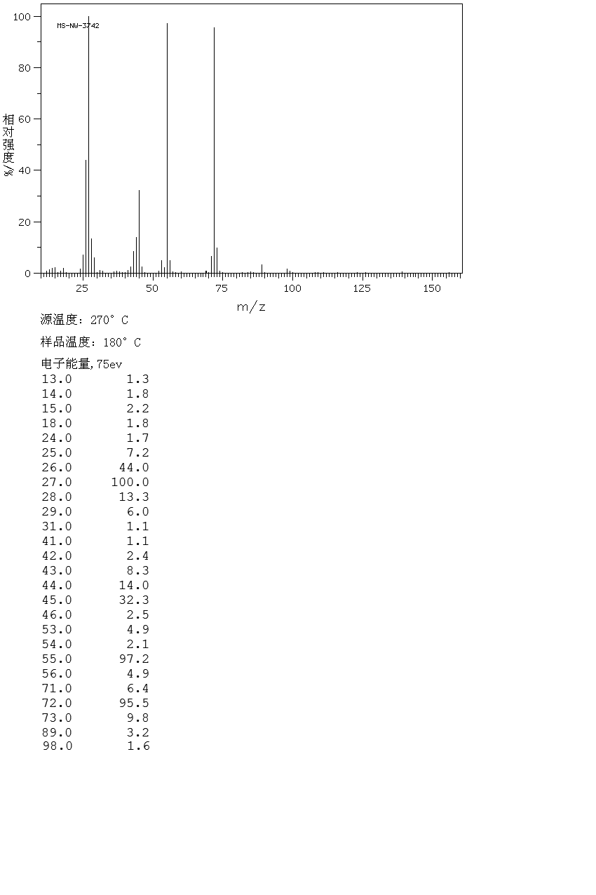 2.采用聚乙烯衬里的铁桶包装,每桶重200kg,也可用不锈钢或碳钢贮槽,但必须防止水分和湿气,以防生锈造成丙烯酸聚合。在贮存和运输时都要添加200*10-6的阻聚剂。按“腐蚀性化学品规定”贮运。