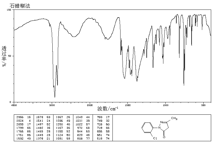 | 标签 | 1-(2-氯苯基)-3-甲基-5-吡唑啉酮, 2-(2-氯丙烯基)-2,4-二氢-5-甲基-3H-吡唑-3-酮, 1-(2'-氯苯基)-3-甲基-5-吡唑啉酮, 2-(2-Chlorophenyl)-2,4-dihydro-5-methyl-3H-pyrazol-3-one, 1-(o-Chlorophenyl)-3-methyl-5-pyrazolone |
