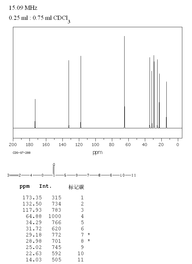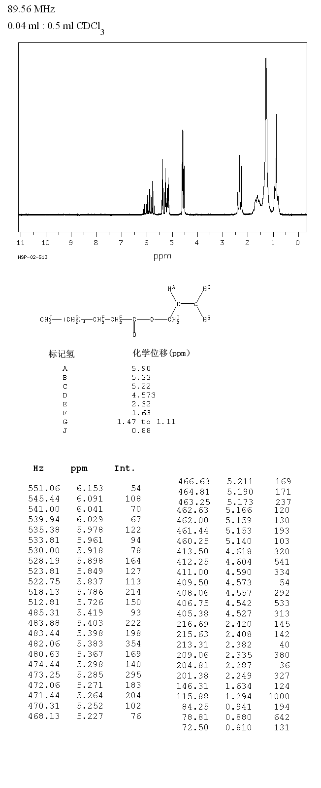 3.由辛酸与烯丙醇以苯作为脱水剂,β-萘磺酸存在下催化酯化得到产品.