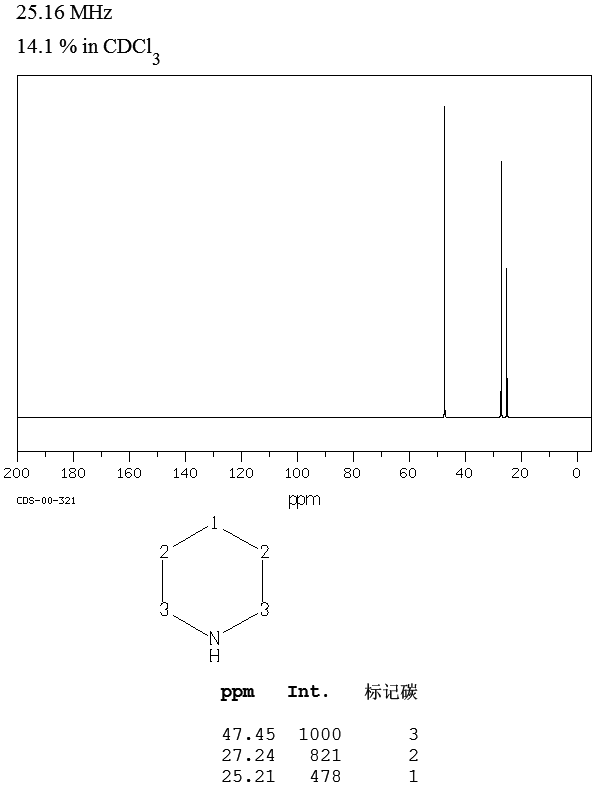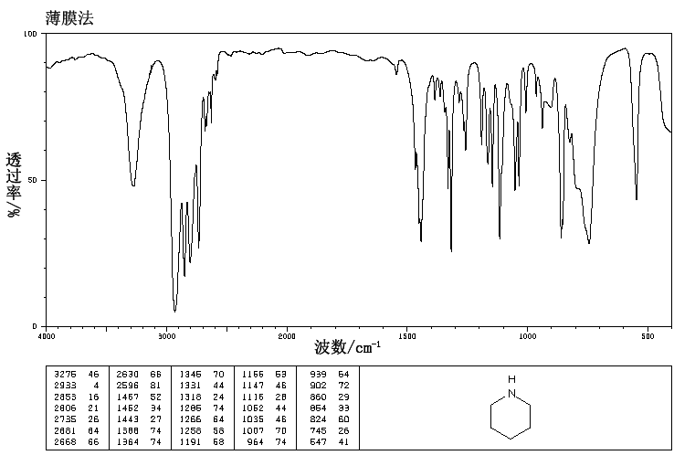 4.六氢吡啶是一种化学实验室常备的二级胺[1]。它是一个典型的用于羟醛缩合(Knoevenagel缩合)反应和Michael加成反应的催化试剂,用于调节亚砜-亚磺酸重排的亲硫试剂,以及合成烯胺的试剂。