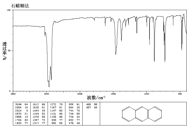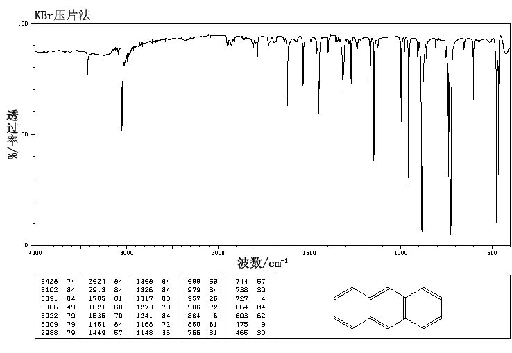 1.用以检定茚。制造蒽醌及茜素染料等。本品主要用于制造染料中间体蒽醌及单宁。可用作杀虫剂、杀菌剂和汽油阻凝剂。高纯蒽用于制取单晶蒽,用在闪烁计数器上。